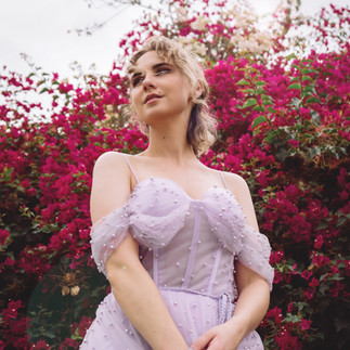 I was made aware that affordable dress rentals in Orange County was a thing through a giveaway on Instagram from a company called CaliGrowns. I followed them immediately and knew I had to find a reason to rent one. I was then reminded of a TikTok that my friend Vina sent me of a wall of flowers located in Santa Ana. The purples and the pinks really spoke to me and I knew it was the perfect location to make my dreams happen.